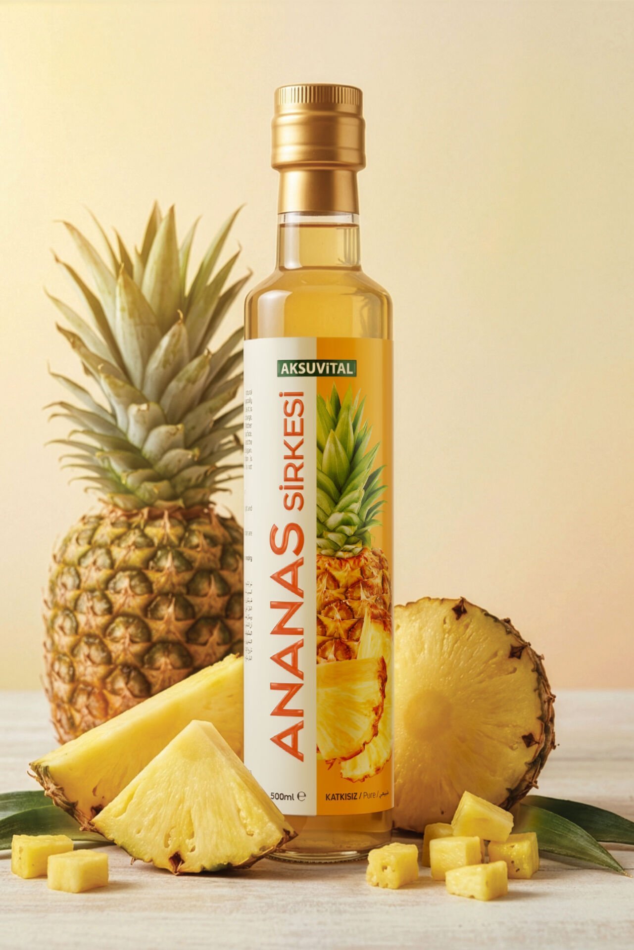 Aksuvital Ananas Sirkesi, mevsiminde toplanan ananasların doğal fermantasyon sürecinden geçirilmesiyle elde edilen bir sirke türüdür. Ticari amaçlı hızlandırılmış fermantasyon yöntemleri kullanılmaz. Üretimde ham maddeye yüksek ısıl işlem uygulanmaz; ürün doğal sürecinde bekletilerek fermente olur. Fermantasyon sürecinde doğal sirke kültürüyle oluşan faydalı mikroorganizmaları barındıran, katkısız ve doğal yöntemlerle üretilen bir sirkedir.