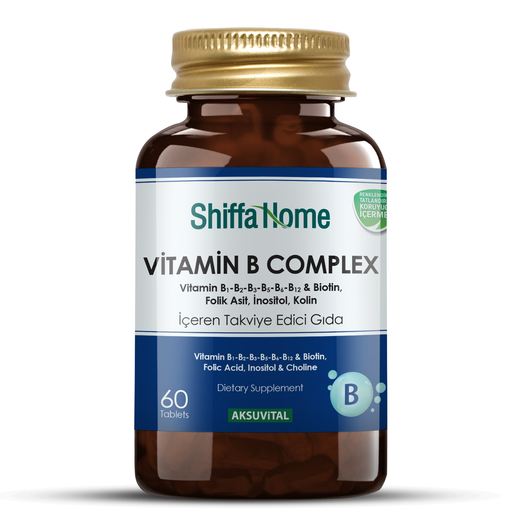 Shiffa Home Vitamin B Complex; B vitaminleri kompleksi ile formüle edilmiş, günlük beslenmeyi desteklemeye yönelik bir takviye edici gıdadır.