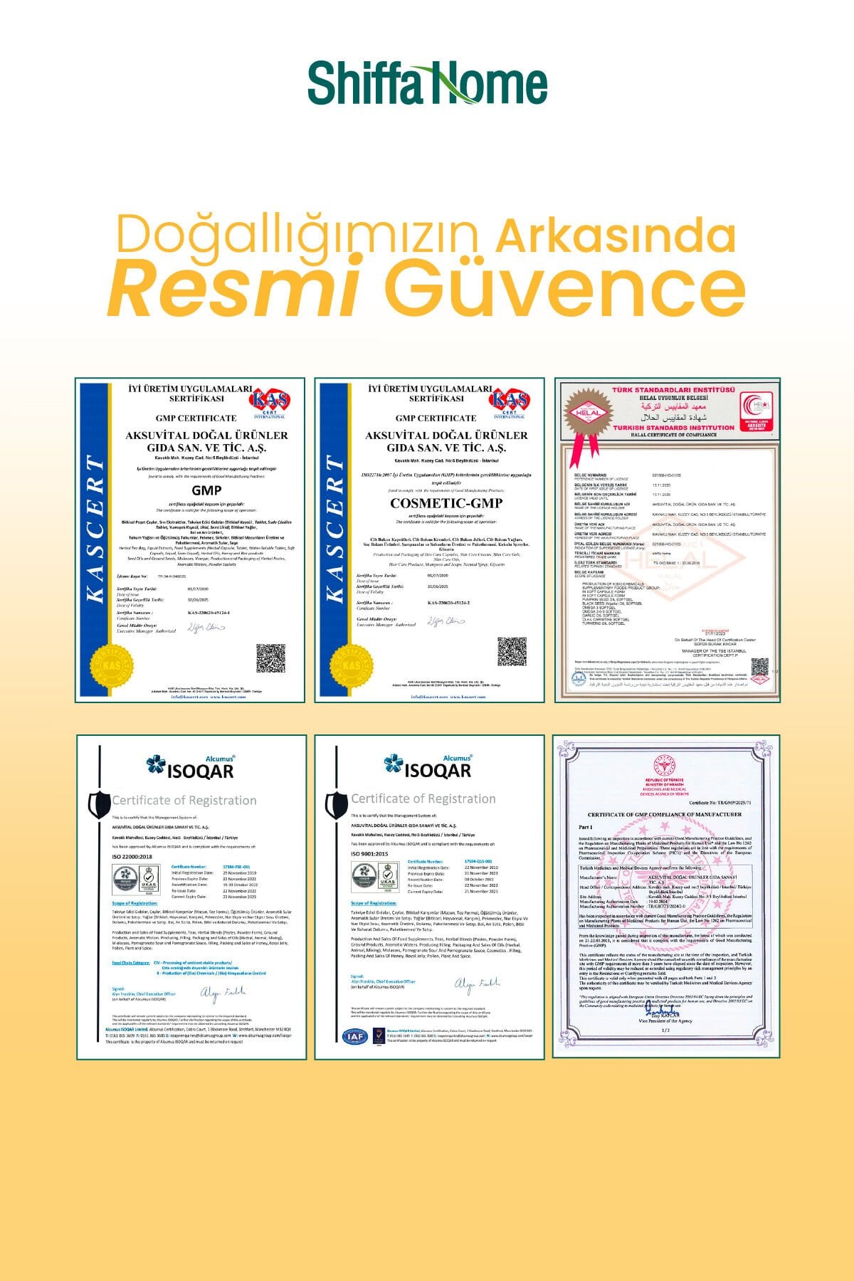 - Üretim tesisimizde ISO 22000:2005, ISO 9001:2015 ve Helal standartları uygulanmaktadır.