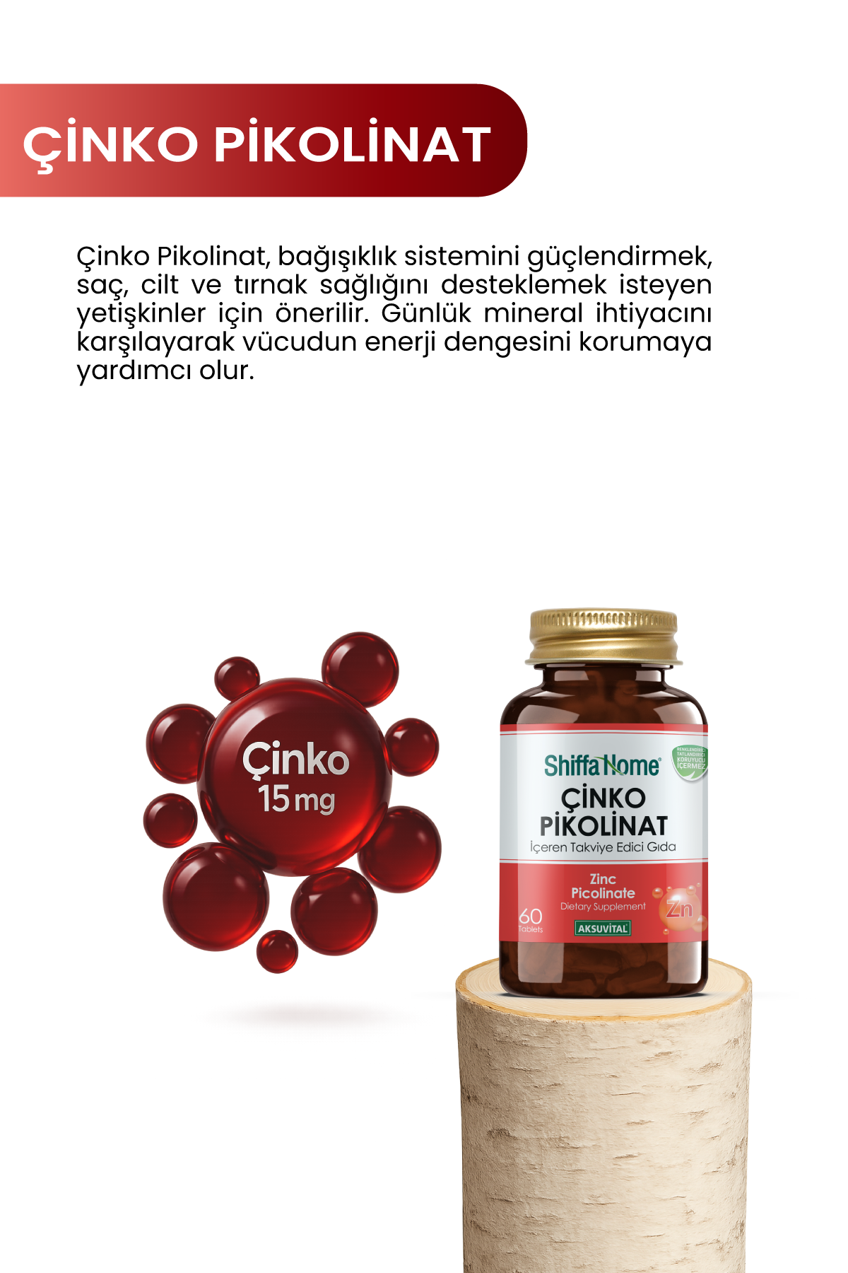 Shiffa Home Çinko Pikolinat’ın içeriğinde bulunan ;