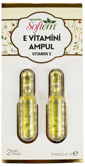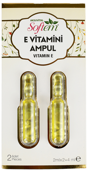 Softem E Vitamini Ampülü, e vitamini özlerinden elde edilen bir bakım kapsülüdür. AksuVital Arge merkezinde gerekli hijyenik koşullarda üretilen Softem E Vitamini Ampül hem cilt bakımı hem de saç bakımı amacıyla kullanılabilir.
