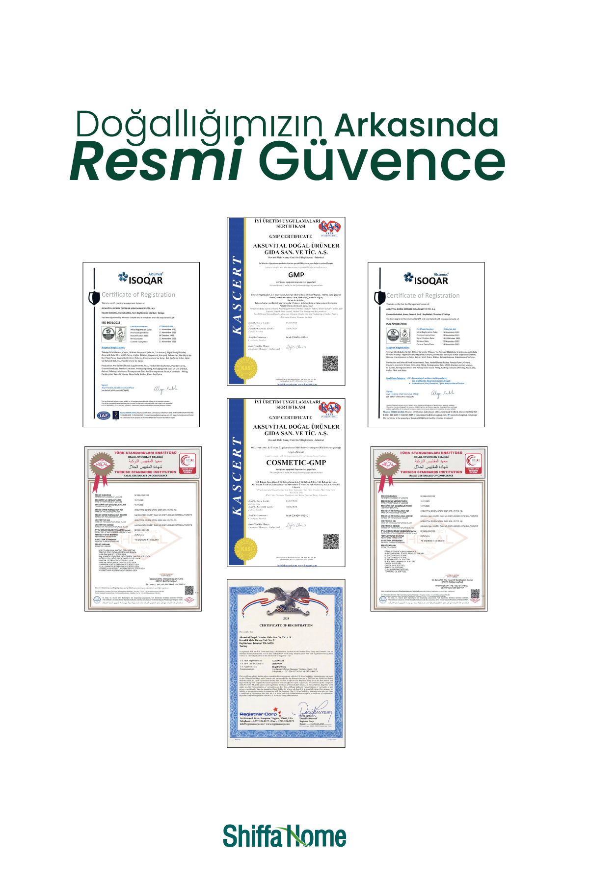 Shiffa Home bir AksuVital markasıdır. AksuVital, 30 yıllık tecrübesiyle gıda, gıda takviyeleri ve dermo kozmetik alanlarında yaklaşık 400 çeşit ürün üretmektedir. Üretilen her ürünü doğadan tüketiciye ulaşana kadar özenli ve titiz bir çalışmadan geçmektedir. En doğal ve kaliteli hammadde temin edilip, Ar-Ge laboratuvarında testten geçmekte, hijyen ve kalite standartlarında üretime girmektedir. Tüketiciye ulaşacak her ürün doğal ve birinci sınıf kaliteye sahip olmalıdır. Bu sebeple tüm süreç uzman kadro yönetiminde geliştirmektedir.