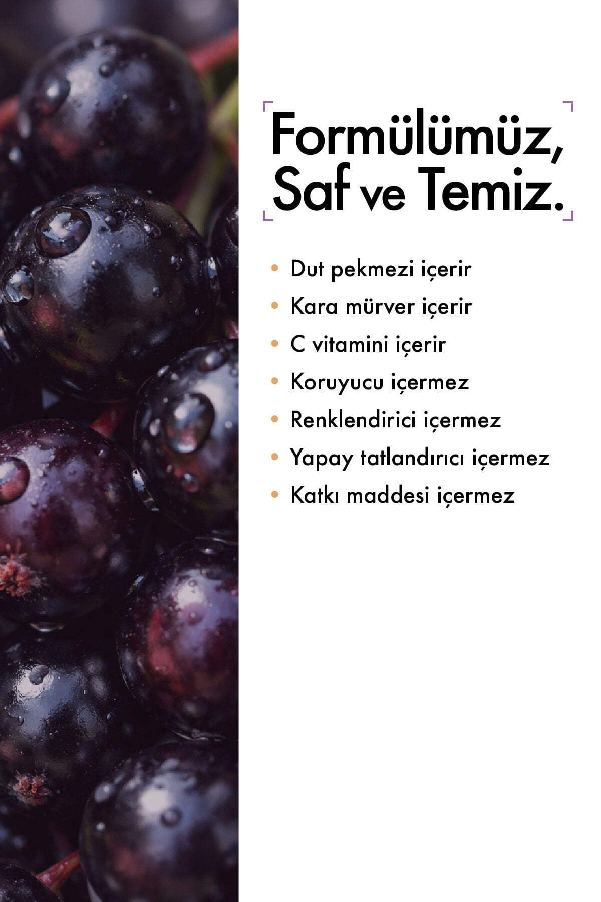 İçeriği: Dut Pekmezi, Kara Mürver (Sambucus Nigra), Çinko, C Vitamini