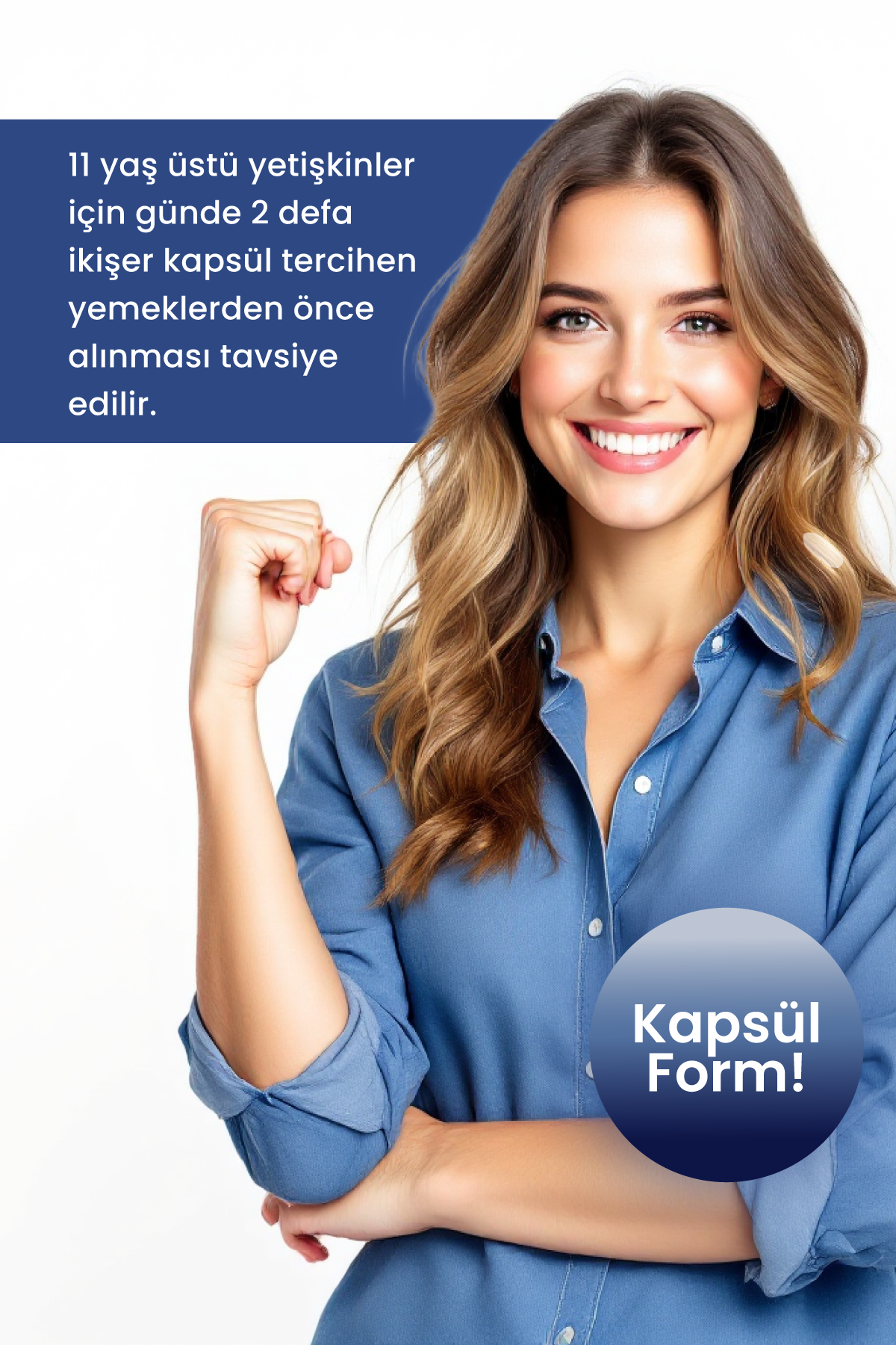 11 yaş üstü yetişkinler için günde 2 defa ikişer kapsül tercihen yemeklerden önce alınması tavsiye edilir.