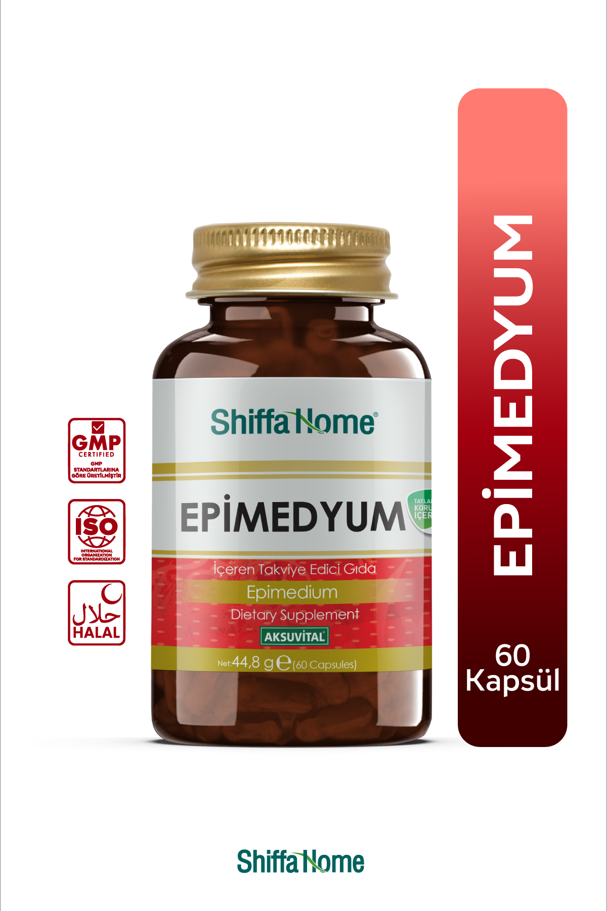 Epimedyum kapsül içinde; Epimedium Kökü Ekstresi, Kırmızı Kore Ginseng Kökü Ekstresi, Cüce Palmiye Meyve Ekstresi, Liyofilize Saf Arı Sütü, L-Arginin, L-Carnitine, Tiamin, Çinko Sülfat Monohidrat bulunduran doğal ürünlerin yüksek teknolojiyle bir araya getirildiği, sizi daima güçlü hissettirecek besin değeri yüksek gıda takviyesidir. Doğal ürünler insan kimyasıyla tam uyumu sebebiyle sağlıklı yaşamın anahtarıdır.