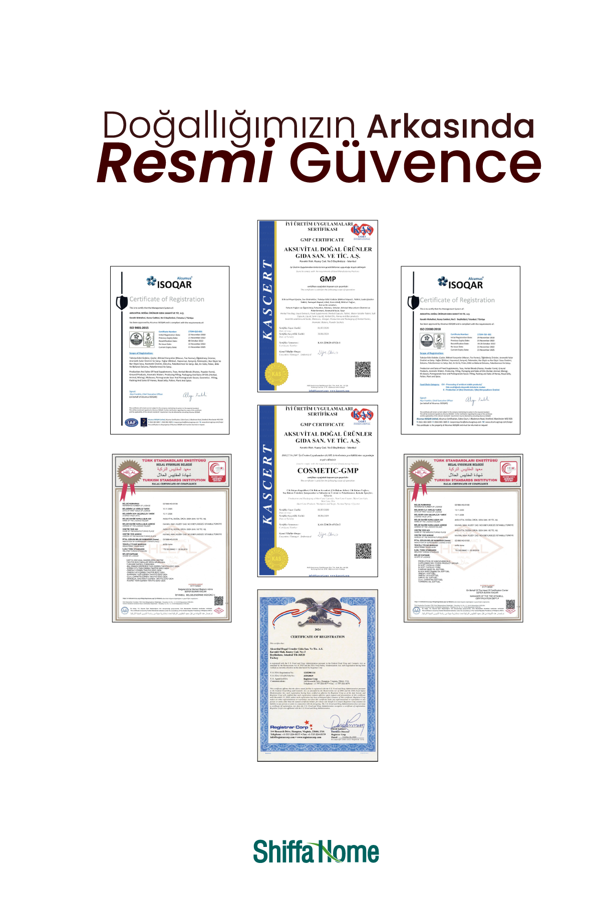 Shiffa Home bir Aksuvital markasıdır. AksuVital, 30 yıllık tecrübesiyle gıda, gıda takviyeleri ve dermo kozmetik alanlarında yaklaşık 400 çeşit ürün üretmektedir. Üretilen her ürünü doğadan tüketiciye ulaşana kadar özenli ve titiz bir çalışmadan geçmektedir. En doğal ve kaliteli hammadde temin edilip, Ar-Ge laboratuvarında testten geçmekte, hijyen ve kalite standartlarında üretime girmektedir. Tüketiciye ulaşacak her ürün doğal ve birinci sınıf kaliteye sahip olmalıdır. Bu sebeple tüm süreç uzman kadro yönetiminde geliştirmektedir.