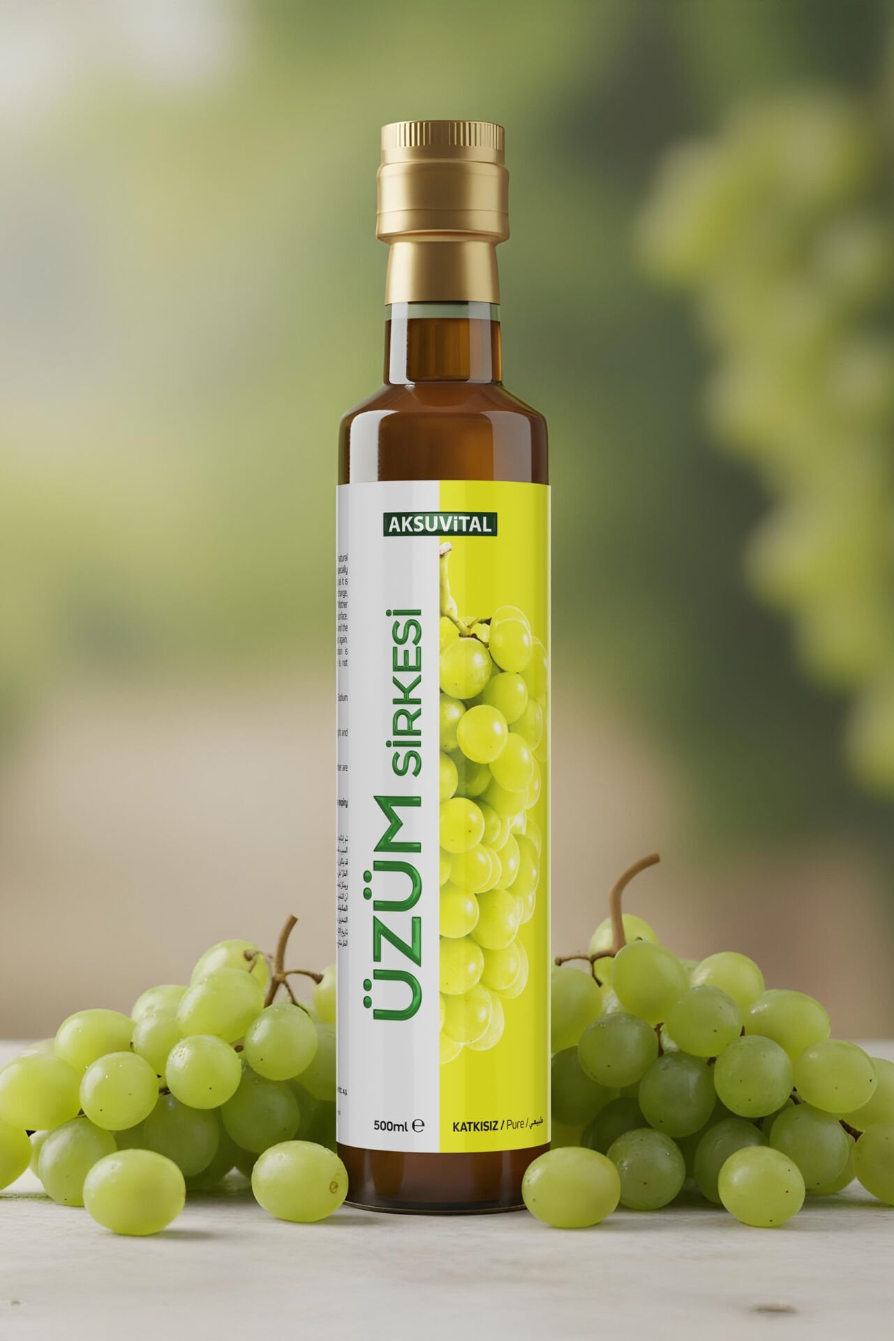 Aksuvital Üzüm Sirkesi, özenle seçilen üzüm tanelerinin doğal fermantasyon sürecinden geçirilmesiyle elde edilen bir sirke türüdür. Ticari amaçlı hızlandırılmış fermantasyon yöntemleri kullanılmaz. Üretimde ham maddeye yüksek ısıl işlem uygulanmaz; ürün doğal sürecinde bekletilerek fermente olur. Fermantasyon sürecinde doğal sirke kültürüyle oluşan faydalı mikroorganizmaları barındıran, katkısız ve doğal yöntemlerle üretilen bir sirkedir.